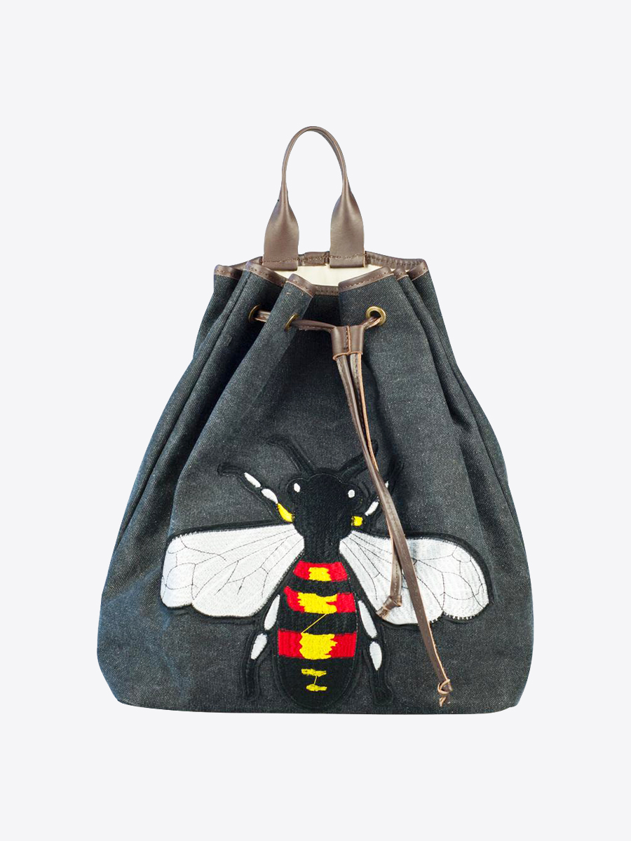 Cool and probably one of the most comfortable and relaxed bag of the Ferraro Ferrari BEE Me collection, the fabric backpack with leather handle, drawstrings and shoulder straps is handsfree-chic. It comes emblazoned with a large embroidered Bee on the front, an internal smartphone pocket and a zip pocket.